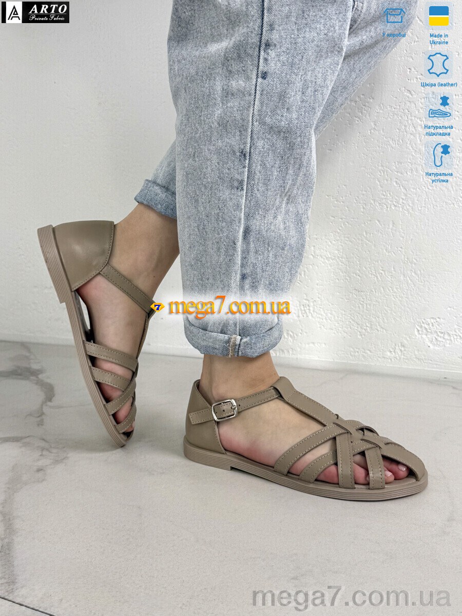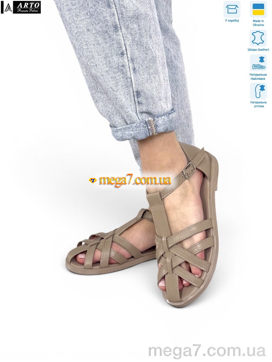 Цвет: коричневый; Материал изделия: натуральная кожа; Размерная сетка: 36-41; Материал подкладки: натуральная кожа; Материал подошвы: пвх; Страна: Украина; Размер (на фото): 37; Сезон: лето; Пол: женщины; Материал стельки: натуральная кожа; Коробка: да;