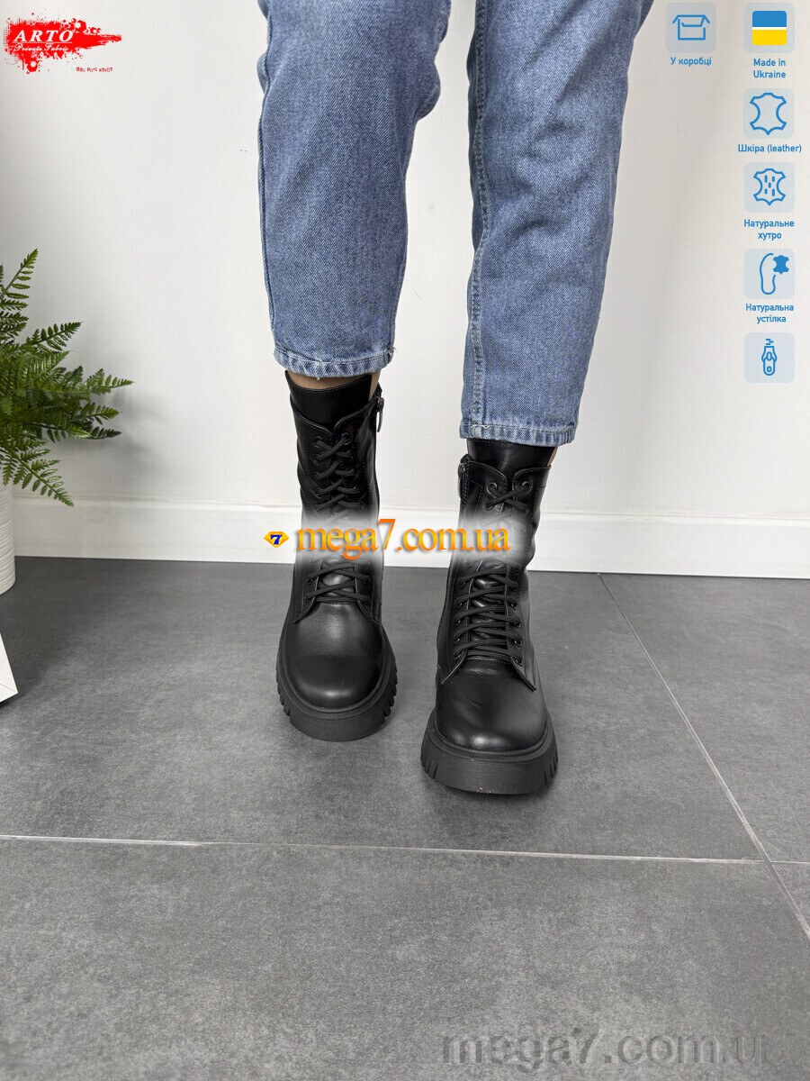 Цвет: черный; Материал изделия: натуральная кожа; Размерная сетка: 36-40; Материал подкладки: натуральный мех; Материал подошвы: пвх; Страна: Украина; Высота каблука, см: 4.5; Высота платформы: 3.5; Размер (на фото): 37; Сезон: зима; Пол: женщины; Материал стельки: натуральный мех; Змейка: да; Коробка: да; Фото поставщика: да;