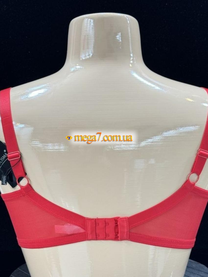 Бюстгальтер: ажурный бюст в мягкой чашке. Вид чашек: полноразмерные чашечки с подкладкой. Наполнитель чашки: на тонком поролоне. Размер чашки: С и D. Состав ткани: 86% nylon, 14% spandex. Объёмы в упаковке: чашка С: 80-2 шт. 85-2 шт. 90-2 шт. чашка D: 80-1 шт, 85-2 шт. 90-2 шт. 95-1 шт. Швы на чашках: вертикальные швы. Перемычка: широкая. Боковые части лифа: средняя. Застежка: сзади на три крючка. Бретельки: средние, несъемные.