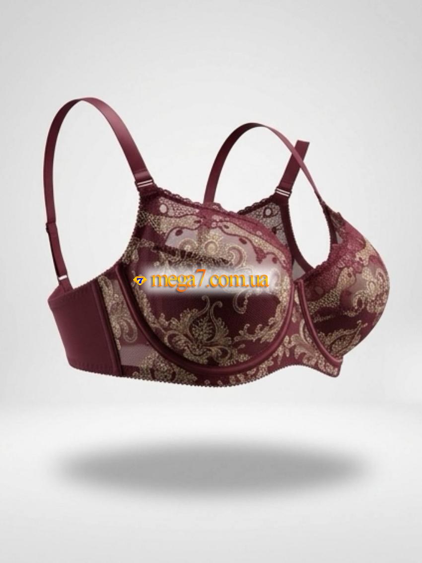 Бюстгальтер: кружевной. Вид чашек: полноразмерные чашечки с подкладкой. Наполнитель чашки: на тонком поролоне. Размер чашки: Е. Состав ткани: 82% нейлон, 18% эластан. Размеры в упаковке: 80-1 шт., 85-1 шт., 90-2 шт., 95-1 шт., 100-1 шт. Швы на чашках: вертикальные швы. Косточки: да. Перемычка: широкая. Боковые части лифа: средняя. Застежка: сзади на два крючка. Бретельки: средние, несъемные.