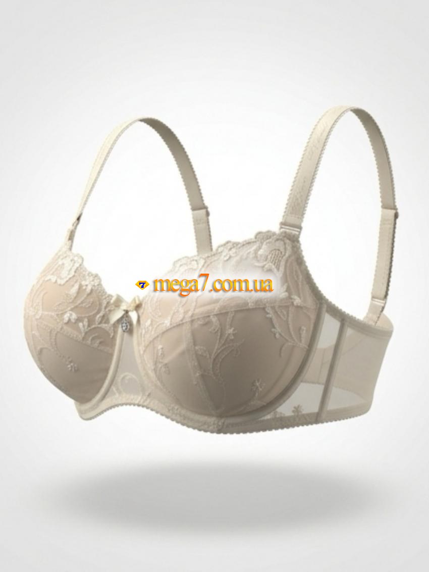 Бюстгальтер: классический, ажурный бюст. Вид чашек: мягкие, полноразмерные чашечки закрывают грудь практически полностью, обеспечивая более широкий охват и поддержку. Наполнитель чашки: без поролона. Размер чашки: D. Состав ткани: 82% нейлон, 18% эластан. Объёмы в упаковке: 75-1шт., 80-1шт., 85-2шт., 90-2шт., 95-1шт. Швы на чашках: вертикальные и горизонтальные швы обеспечивают лучшую поддержку и форму бюсту. Такие чашечки лучше всего охватывают грудь. Косточки: да. Перемычка: широкая. Боковые части лифа: средние. Застежка: сзади на три крючка. Бретельки: средние, съемные. Виды бюстгальтеров