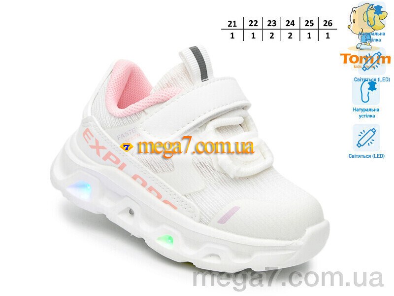 Цвет: белый; Материал изделия: искусственная кожа-текстиль; Размерная сетка: 21-26; Материал подкладки: текстиль; Материал подошвы: пена; Страна: Китай; Высота платформы: 3; Размер (на фото): 21; Сезон: демисезон; Пол: дети; Тип: девочка; Материал стельки: натуральная кожа; LED: да;