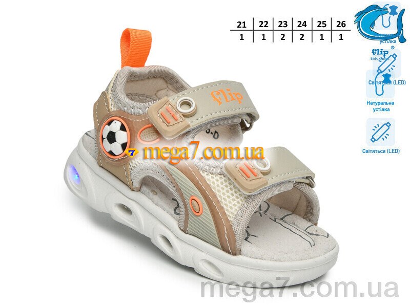 Цвет: бежевый; Материал изделия: искусственная кожа-текстиль; Размерная сетка: 21-26; Материал подкладки: текстиль; Материал подошвы: пена; Страна: Китай; Высота платформы: 2; Размер (на фото): 21; Сезон: лето; Пол: дети; Тип: мальчик; Материал стельки: натуральная кожа; LED: да;